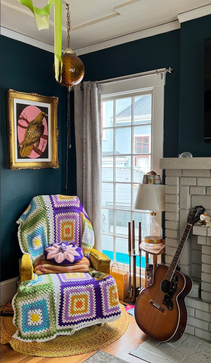 It’s brown with maroon squiggles and sags ever so slightly. The cats have shredded one of the arms. I drink my morning coffee here and write snuggled under an electric blanket my friend gave me to take to chemo infusions. Lately, it’s a lot of ranting about what I’ve lost this year. Some of it makes it into Substack posts where I share updates on how I’m doing, a lot doesn’t.